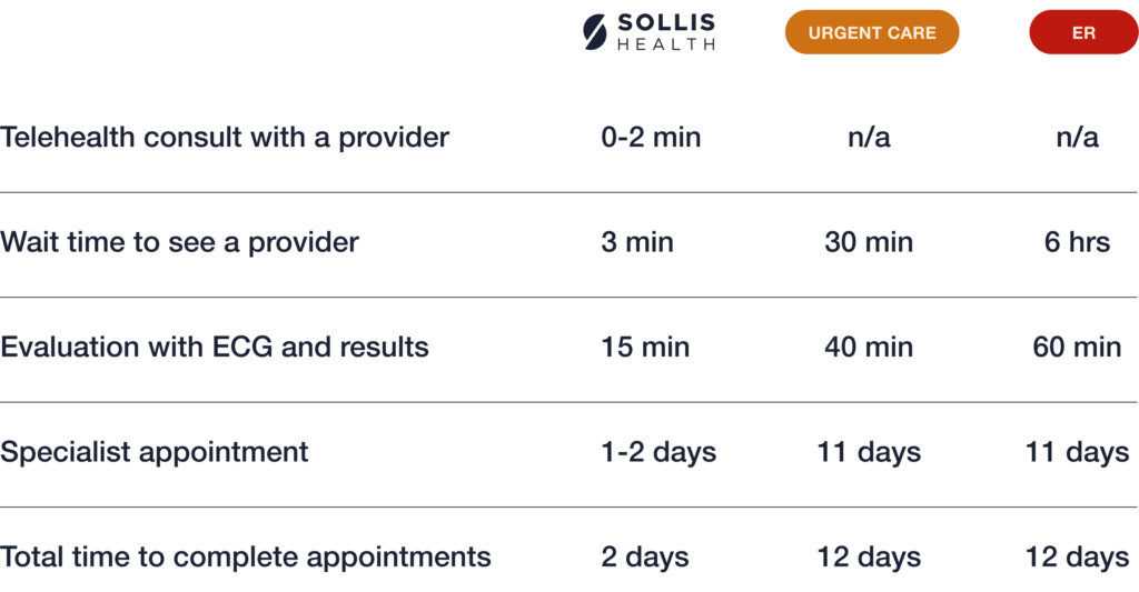 • Sollis Signature Membership: We handle 90% of what the traditional ER does with seamless comfort, expert medical teams, and care navigation that ensures rapid treatment so you can start feeling better, faster. Starting at $4,000 for adults over 18.